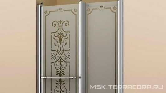 Душевая дверь Romance Collection Bristol Дверь в нишу 1000хh1950мм, распашная во внутрь и наружу, с неподв.сегм., вход 521мм, правая/левая, (профиль цв. бронза, стекло 6мм мат.с прозр.рис ZZ