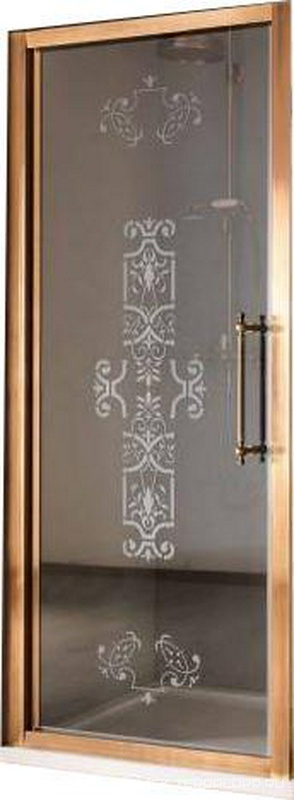 Дверь для душа, в нишу или для боковой стенки, 90(86-92)хh200см, правая/левая, (стекло матовое с прозр. декором, профиль цв.бронза), ZZ Samo Villa Borchese B7305 TBR R6