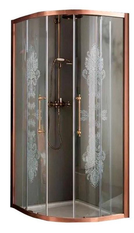 Душевая дверь Samo Villa Borchese Дверь раздвиж. д/душа 1/4 круга, 900(865-895мм)х900(865-895мм)хh2000мм, R 550 (проф.,ручки цв. хром, стекло матовое с декором прозрачным R8+starcl ZZ
