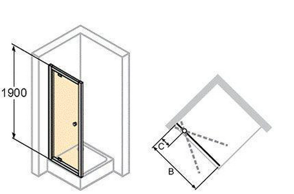 Душевая дверь Huppe Alpha 2 Дверь в нишу или для бок.стенки, откр.вовнутрь и наруж.900(893-918)хh1900мм,правая/левая,(проф.цв.мат.серебро,стек.прозр.5мм),Alpha2/PLSDS KL