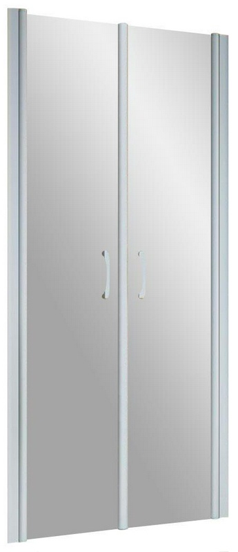 Душевая дверь 90*190 двустворчатая , распашные створки, профиль матовый хром, стекло прозрачное ZZ