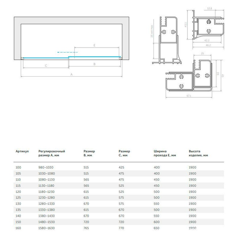 Душевое ограждение E2P 114 05 05 схема 865 профиль бронза стекло бронза, ПОКРЫТИЕ BriteGuard, ZZ