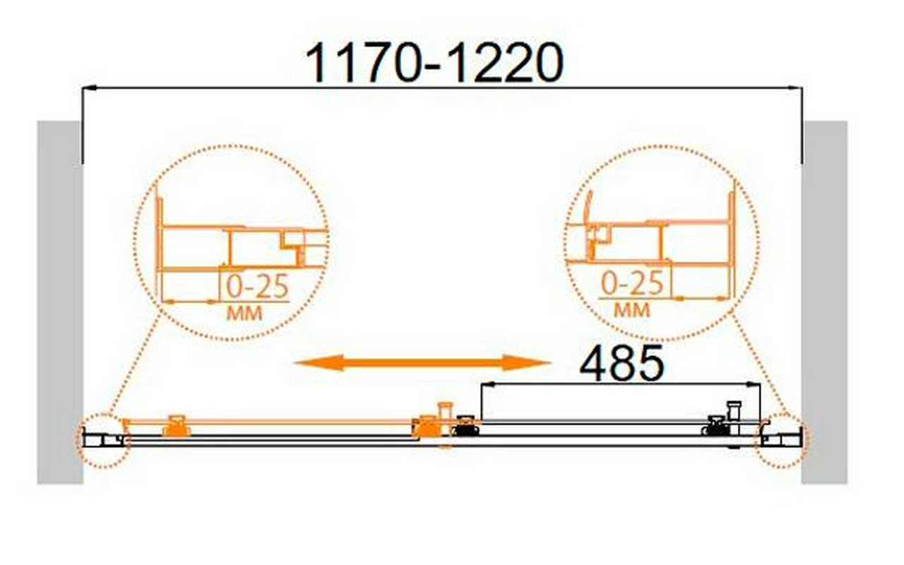 Душевая дверь Cezares Molveno Дверь в нишу 1200(1170-1220)хh1950мм, сдвижная, правая/левая, вход 485мм,(ст.прозр.Idrorepellente 6мм,фурнит.цв.хром), Molveno ZZ
