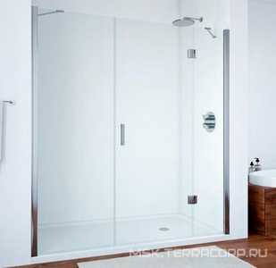 Душевая дверь Vegas Glass AFP-F Дверь в нишу AFP-F 170x190 см, правая, одностворчатая распашная, с двумя неподвижными элементами, профиль матовый хром, стекло прозрачное ZZ