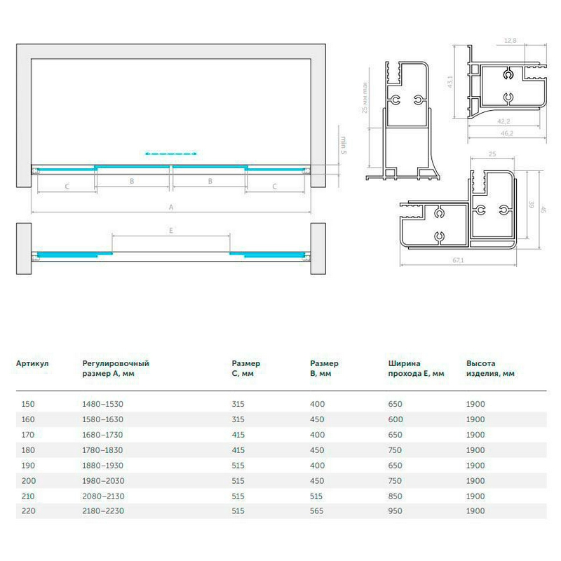 Душевая дверь Vegas Glass Z2P Дверь в нишу Z2P, 170*190 см, двухстворчатая раздвижная, профиль хром глянец, стекло шиншилла ZZ