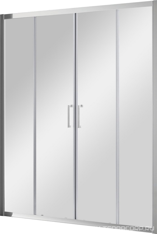 Дверь в нишу ZP NOVO h190 см, 145*190 см, двухстворчатая раздвижная, профиль матовый хром, стекло прозрачное, БЕЗ покрытия, ZZ