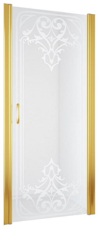 Дверь для душа, в нишу или для боковой стенки, 90(86-92)хh200см, правая/левая, (стекло матовое с прозр. декором, профиль цв.золото), ZZ Samo Villa Borchese B7305 ELO R6