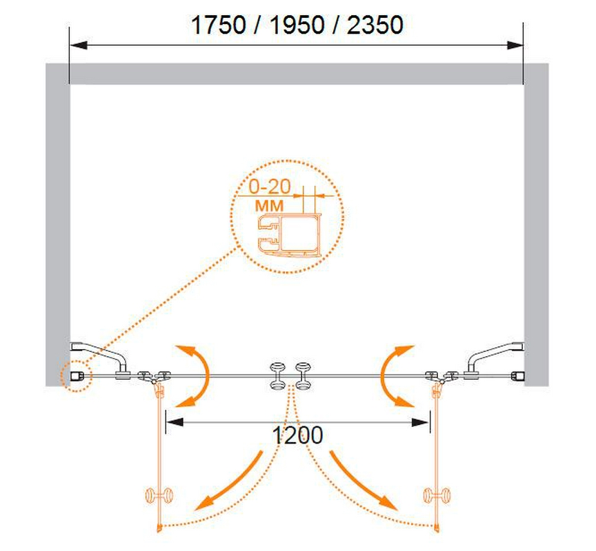 Душевая дверь Cezares Elena ELENA-W-B-22-240-P-Cr Душевая дверь | ZZ