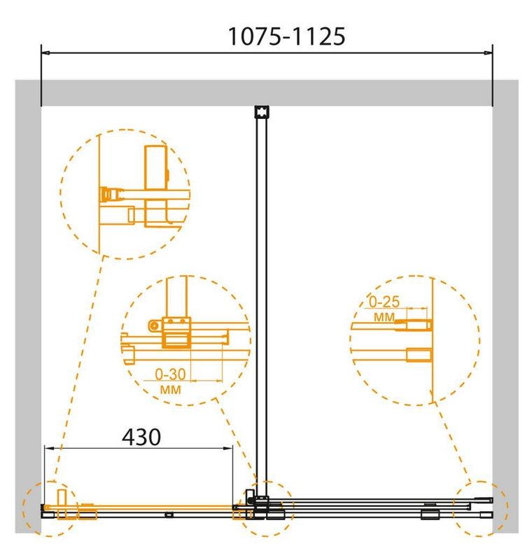 Душевая дверь Cezares Stream Дверь в нишу 1100хh1950мм, сдвижная с неподв. сегм., вход 430мм справа/слева, (стекло прозрачное 8мм, фурнит. цв.хром), Stream ZZ