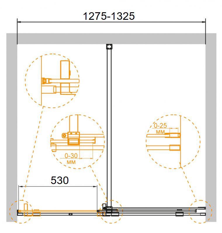 Душевая дверь Cezares Stream Дверь в нишу 1300хh1950мм, сдвижная с неподв. сегм., вход 480мм справа/слева, (стекло прозрачное 8мм, фурнит. цв.хром), Stream ZZ