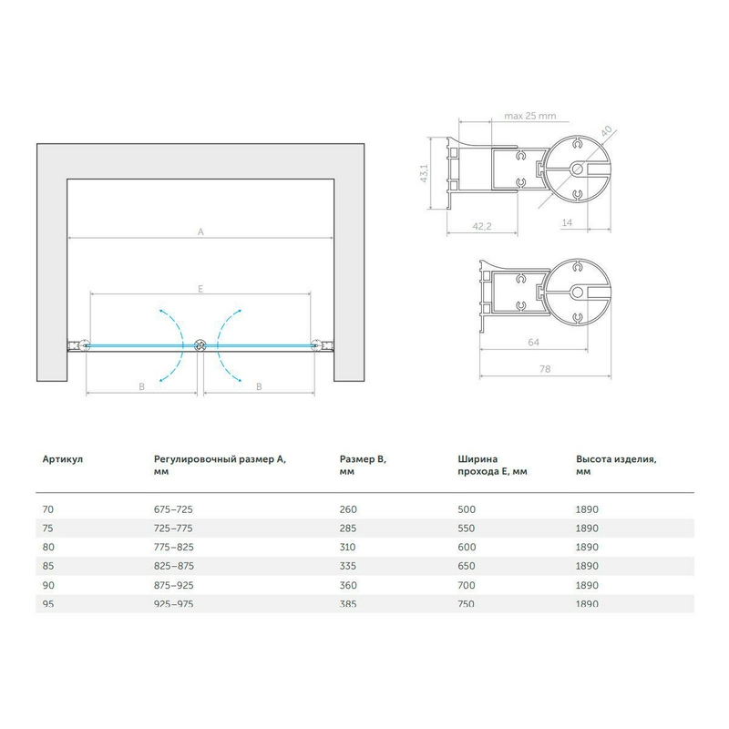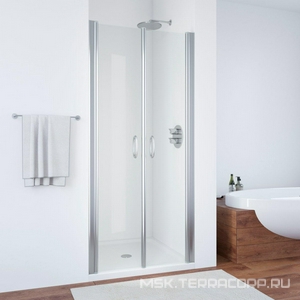 Душевая дверь Vegas Glass Е2Р Душевая дверь 90*190 двустворчатая , распашные створки, профиль бронза, стекло прозрачное С ПОКРЫТИЕМ ZZ