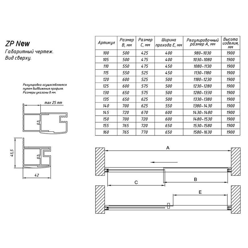 Душевая дверь Vegas Glass ZP NOVO Дверь раздвижная 2х секционная ZP TUR NOVO, 120x190 см, профиль хром стекло прозрачное ZZ