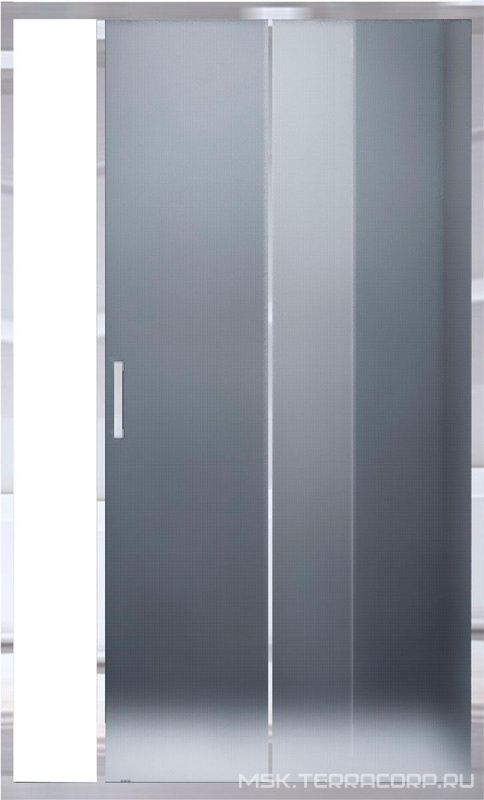 Дверь в нишу, 170x190 см, двухстворчатая раздвижная, профиль матовый хром, стекло сатин с покрытием BriteGuard, ZZ