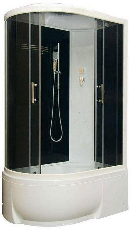 Душевая кабина Bas Фиджи Душевая кабина без гидромассажа Фиджи ЭКО 120*80 правая, переднее стекло - Графит, заднее - черное, высокий поддон, смеситель модерн XX