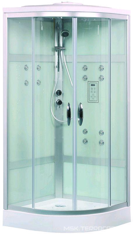 Душевая кабина AMPM Joy Душевая кабина с гидромассажем 900*900*2190мм, переднее стекло прозрач., задние мат-е,профиль хромс, верх. и ручной душ, смеситель XX