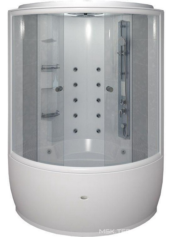 Душевая кабина Radomir Лаура Душевой бокс "ЛАУРА компл.2", шторки "PRIMAVERA", стандарт. ГМ в ванне, контрол. 300, функция "Пар", горизонт. ГМ10, верт. душ, смес./излив "МиниСфера
