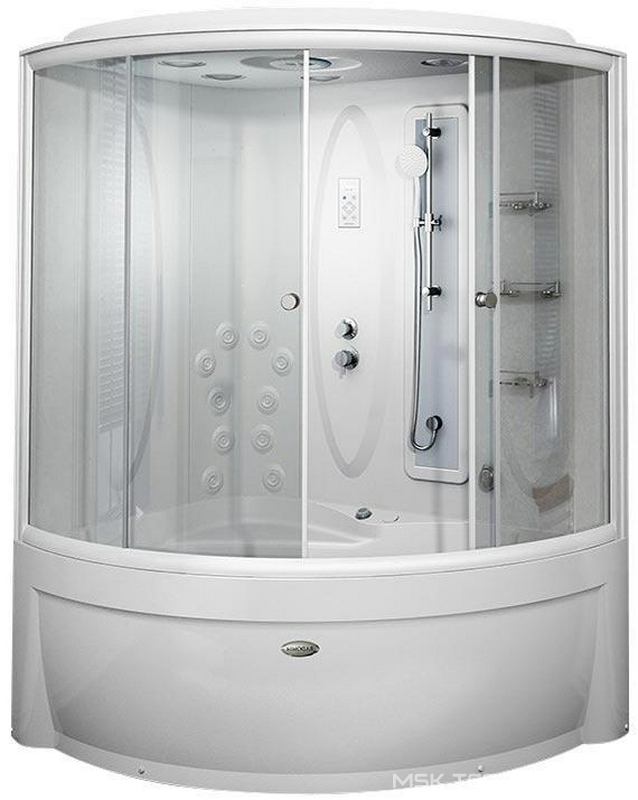Душевая кабина Radomir Вирсавия Душевой бокс «ВИРСАВИЯ», (левая), слив-перел., фронт. панель, контрол.300, пар, гориз.ГМ10, троп. дождь, смеситель "МиниСфера" , излив ZZ