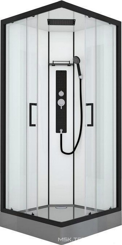 Душевое ограждение 90x90х215 см, распашные двери, профиль черный, стекло прозрачное, поддон и сифон в комплекте ZZ Black & White galaxy G8002