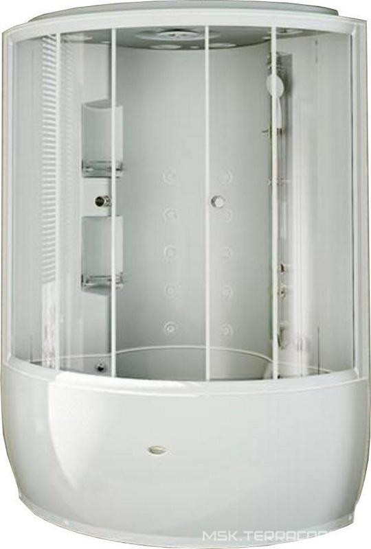 Душевая кабина Radomir Лаура Душевой бокс "ЛАУРА", слив-перелив,фрон панель, боковые стенки, крыша, стекл шторки (прозрачные), вертикальный душ "Тропический дождь", смеситель-изли