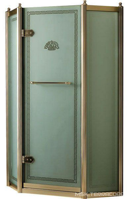 Душевой уголок 900х900хh2116мм, квадрат, "Правый" распаш. дверь справа, с неподв.стенкой (стекло матовое с прозр/узором, 8мм, фурн/золото), Retro ZZ