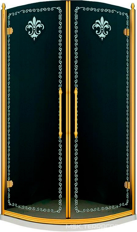 Душевое ограждение Cezares Retro Душевой уголок 900х900хh2020мм, 1/4 круга, R550мм, две распашные двери, (стекло прозрачное с матовым узором, 8мм, фурнит. цв.золото), Retro ZZ