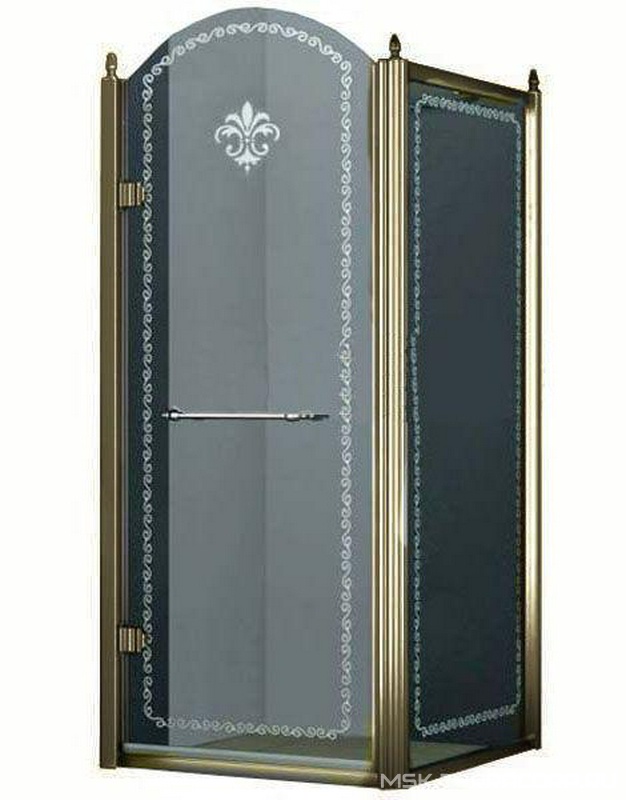 Душевое ограждение Cezares Retro Душевой уголок 900х900хh2116мм, квадрат, "Левый" распаш. дверь слева, с неподв.стенкой (стекло прозрачное с мат/узором, 8мм, фурн/бронза), Retro XX