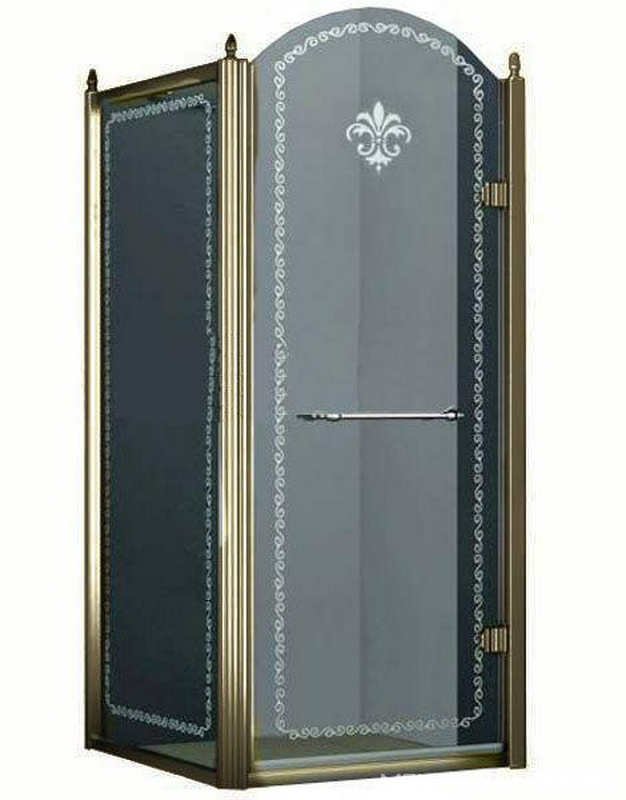 Душевой уголок 1000х1000хh2118мм, квадрат, "Левый" распаш. дверь слева, с неподв.стенкой (стекло прозрачное с мат/узором, 8мм, фурн/бронза), Retro ZZ
