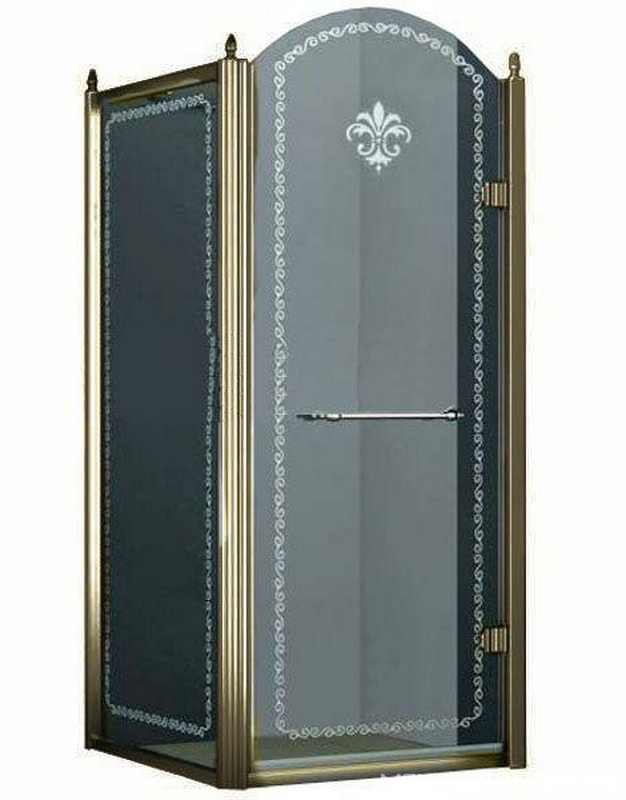 Душевой уголок 1000х1000хh2118мм, квадрат, "Правый" распаш. дверь справа, с неподв.стенкой (стекло прозрачное с мат/узором, 8мм, фурн/бронза) Retro ZZ