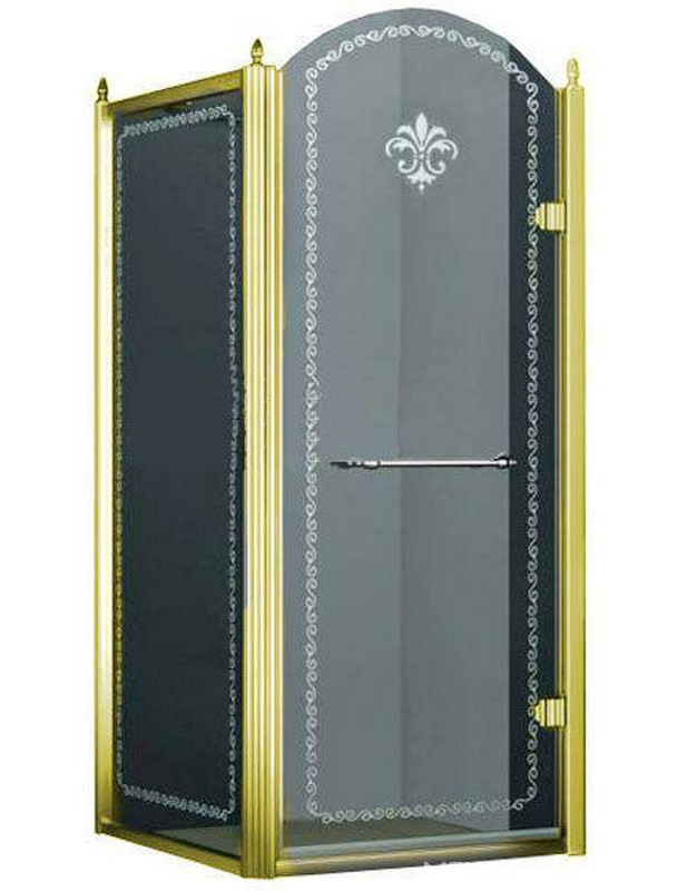 Душевой уголок 900х900хh2116мм, квадрат, "Правый" распаш. дверь справа, с неподв.стенкой (стекло матовое с прозр/узором, 8мм, фурн/золото), Retro ZZ