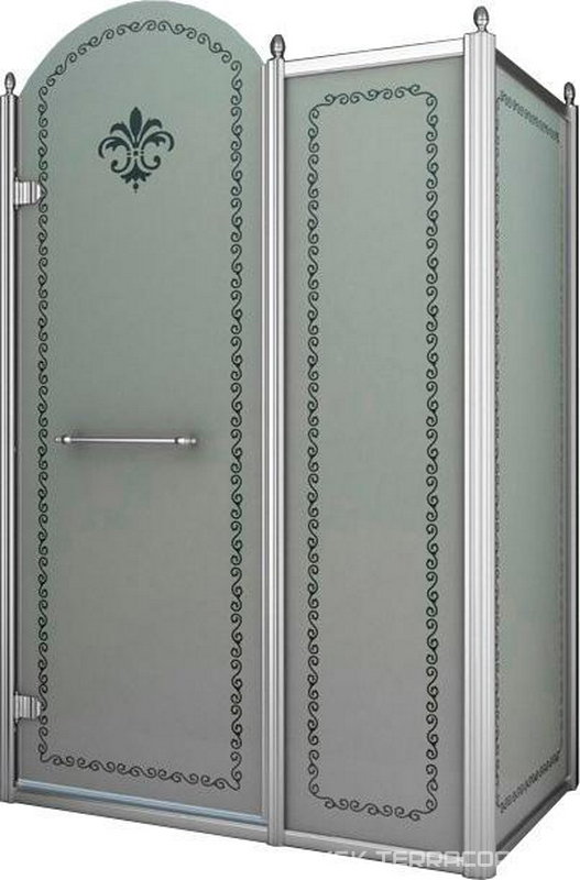 Душевое ограждение Cezares Retro Душевой уголок 1000х1000хh2118мм, квадрат, "Левый" распаш. дверь слева, с неподв.стенкой (стекло матовое с прозр/узором, 8мм, фурн/хром), Retro ZZ