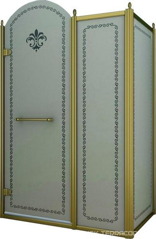 Душевой уголок 900х900хh2116мм, квадрат, "Правый" распаш. дверь справа, с неподв.стенкой (стекло матовое с прозр/узором, 8мм, фурн/золото), Retro ZZ