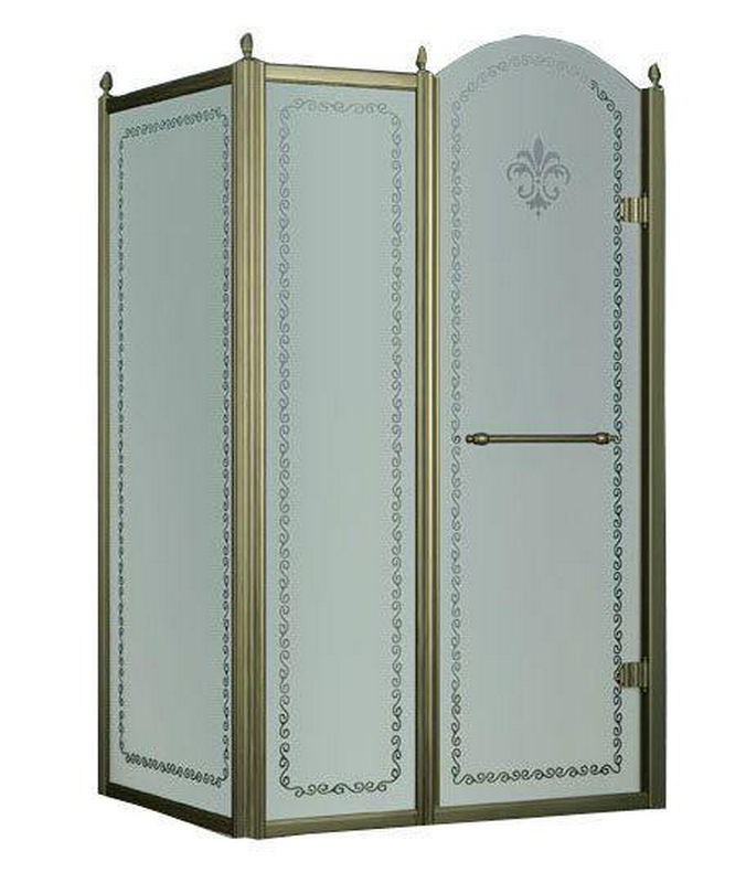 Душевой уголок 1000х1000хh2118мм, квадрат, "Левый" распаш. дверь слева, с неподв.стенкой (стекло прозрачное с мат/узором, 8мм, фурн/бронза), Retro ZZ