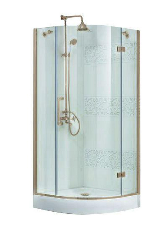 Душевое ограждение Cezares Magic Душ. уголок 1000х1000хh1950мм, 1/4 круга, R550мм, расп.дверь петли справа, вход 730мм, с 2-мя неподв.сегм., (стекло прозр, 8мм, фурн/бронза), Magic XX