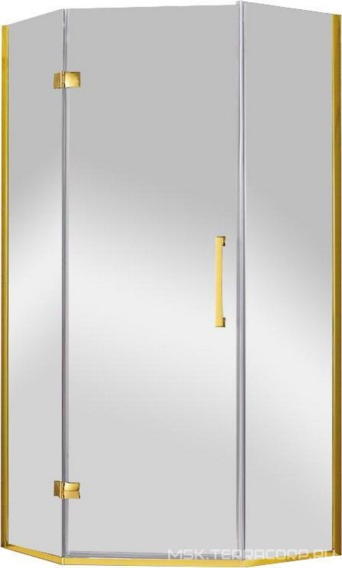 Душевое ограждение Cezares Magic Душ. уголок 900х900хh1950мм, пятиугольный, расп.дверь петли слева, с 2-мя неподв.сегм., вход 595мм, (стекло прозр., 8мм, фурн. цв.золото), Magic ZZ