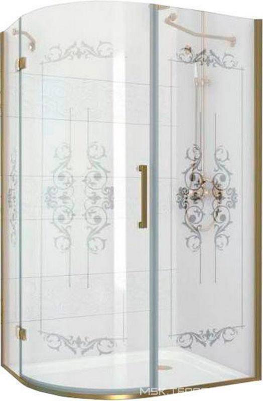 Душевое ограждение Cezares Magic-Royal Palce Душ.угол.1200х900хh1950мм,R550,ассиметрич, "Правая" (петли слева),вход 730мм,(стек.8мм, матов.с прозр.рис, фурн. цв.зол.),Magic-RP ZZ