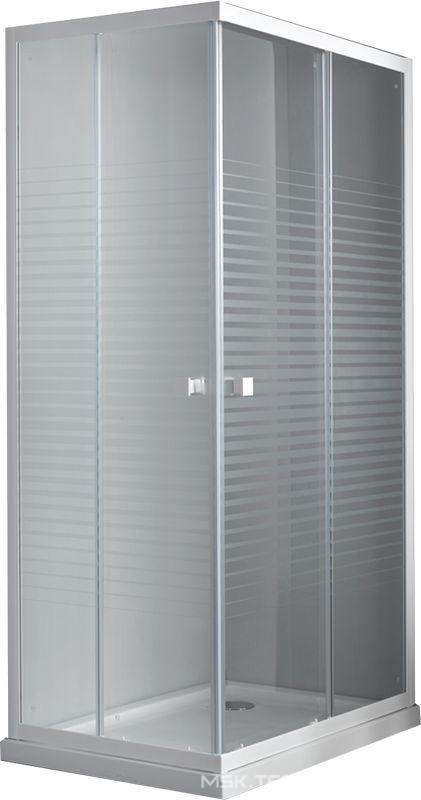 Душевое ограждение SanycCes Gala Душевой уголок Gala 80*80*185 см, квадратн., белый проф., экранир.стекло (белая полоска), БЕЗ поддона, сифона, установочный набор в компл. ХХ