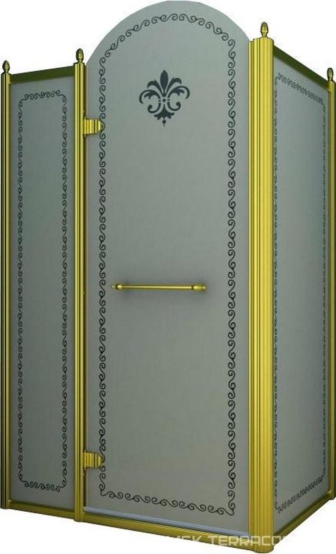 Душевое ограждение Cezares Retro Душевое огражд.прямоуг.1200х900хh2166мм, дверь 760мм, петли, неподв.сегм. слева, бок. стенка справа,(ст.8мм,мат. с прозр.рис., фурн. цв.зол),Retro ZZ