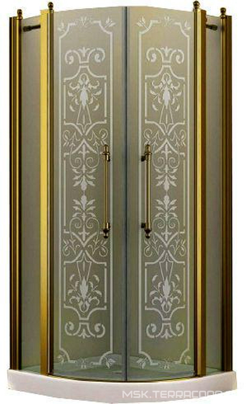 Душевое ограждение Romance Collection Malme Душевое ограждение, 1/4 круга, R550, 900х900хh1950мм, 2 расп.двери с 2 неподв.сегм., (профиль цв. золото, стекло 6мм прозр.с матов.рис), Malme ZZ