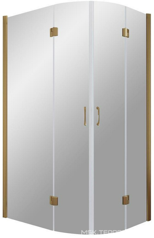 Душевое ограждение, 1/4 круга, R550, 1000х1000хh1950мм, 2 расп.двери с 2 неподв.сегм., (профиль цв. золото, стекло 6мм матовое.с прозр.рис), Malme ZZ