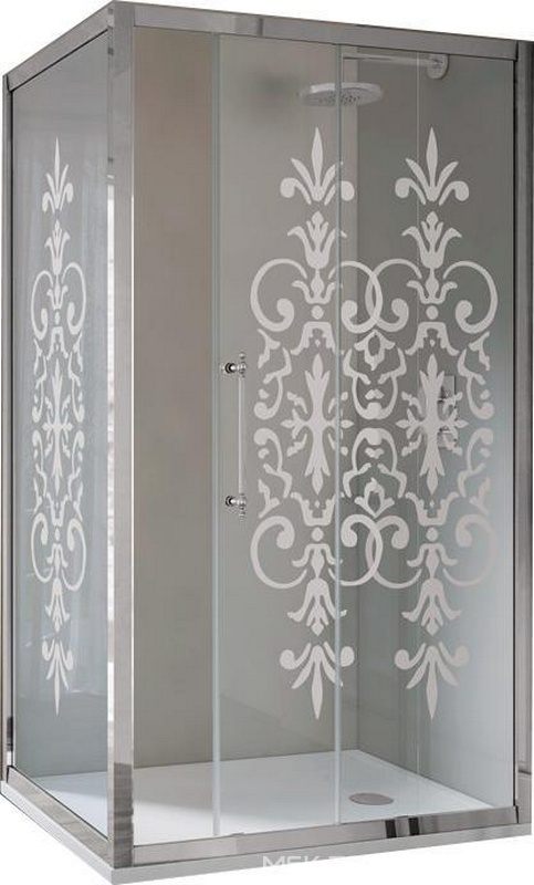 Стенка боковая для душевой двери, 100(97-100)хh200см, правая/левая, (стекло матовое с прозр. декором, профиль цв.золото), Villa Borchese ZZ