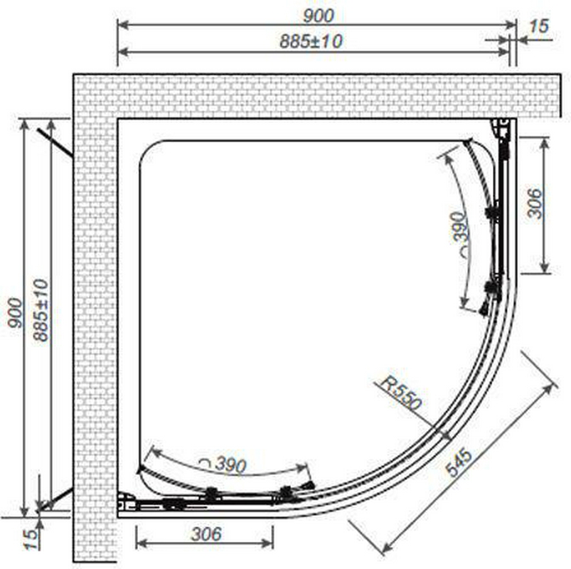 Душевое ограждение Romance Collection Umea Душевое ограждение 1/4 круга, R550, 900х900хh1950мм, 2 сдвижн.двери, 2 неподв.сегмента, (стекло прозр. Easy Clean 6мм, профиль цв.хром), Umea ZZ