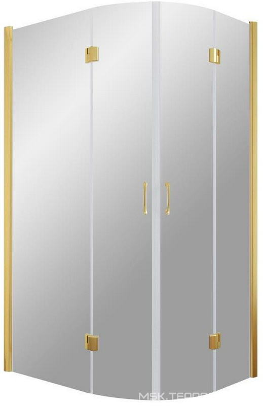 Душ. уголок 900х900хh1950мм, 1/4 круга, R550мм, 2 расп.двери, вход 730мм, с 2-мя неподв.сегм., (стекло прозрачн, 8мм, фурн/золото), Magiс ZZ