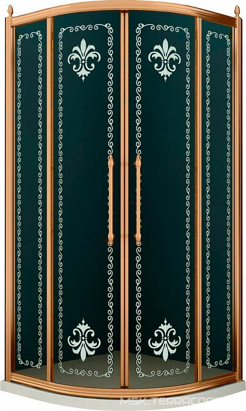Душевой уголок 1000х1000хh1950мм, 1/4 круга, R550мм, две раздвижные двери (ст.прозр. с матов.рис. 6мм, фурнитура цв.бронза), Giubleo ZZ