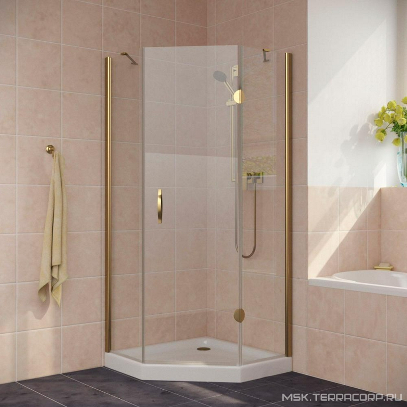 Душевое ограждение Vegas Glass AFA-Pen Душевое ограждение пятиугольное AFA-Pen, 100x100x190 см, правая, профиль бронза, стекло прозрачное, БЕЗ поддона ZZ