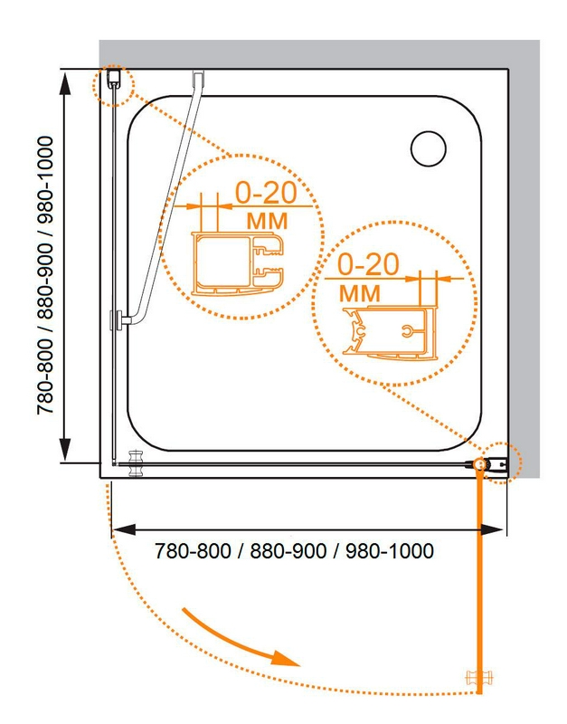 Душевое ограждение Cezares Elena Душевой уголок 1000х1000хh1950мм, квадратный (петли справа/слева), 1 распаш. дверь с боковой стенкой, (ст.прозрачное 6мм, фурнит. цв.хром), Elena ZZ