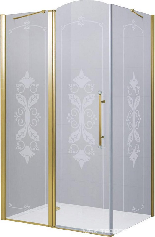 Душевой уголок 1000х1000хh2118мм, квадрат, "Правый" распаш. дверь справаа, с неподв.стенкой (стекло прозрачное с мат/узором, 8мм, фурн/золото) Retro Z