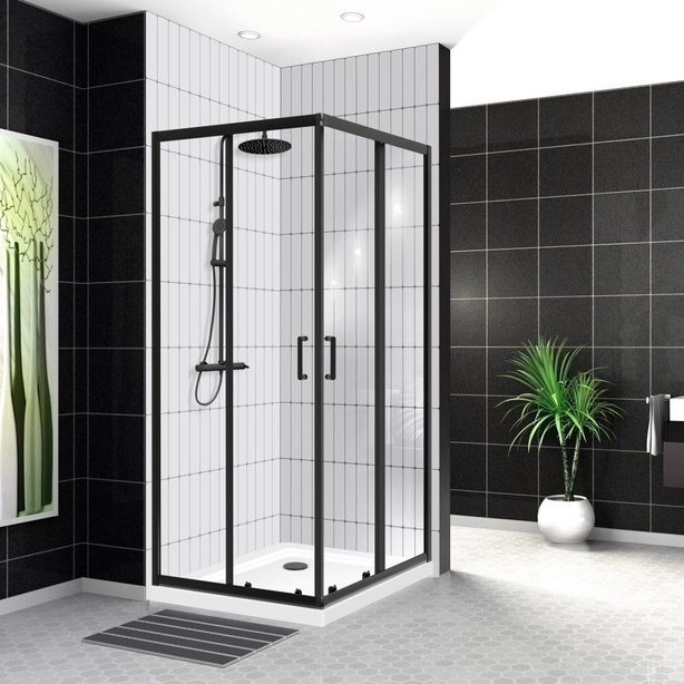 Душевое ограждение 1000x1000х1950мм, 2 раздвижных двери, 2 неподвижных секции, (стекло прозрачн.8мм, фурн.цв.черный), Acqua ZZ