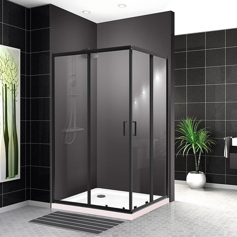 Душевое ограждение 1000x1000х1950мм, 2 раздвижных двери, 2 неподвижных секции, (стекло прозрачн.8мм, фурн.цв.черный), Acqua ZZ