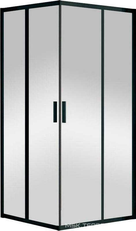 Душевой уголок 900х900хh1900мм, квадрат, 2 сдвиж. дверцы с 2 неподв. сегментами, (стекло прозрачное 6мм, фурн.цв.черный матовый), Eco