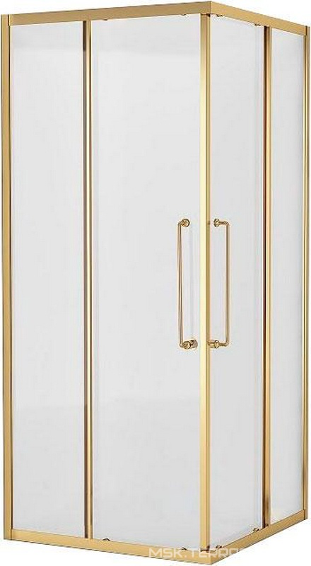 Душ.уголок 1000х1000хh1950мм, квадрат, распашная дверь с неподв.сегм. и бок.стенкой, ПРАВАЯ, (стекло прозр.с мат.узором 6мм, проф.цв.золото),GiubleoZZ
